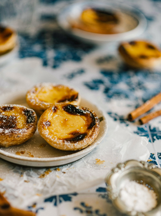 De serveres bedst varme og drysset med kanel og flormelis. Disse portugisiske delikatesser har deres oprindelse i klostre, hvor munke brugte æggehvider til at stive tøj og opfandt tærterne, så de kunne bruge de overskydende æggeblommer til noget.